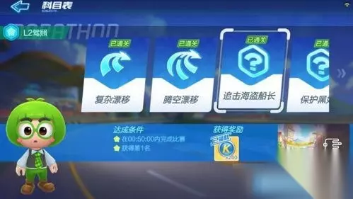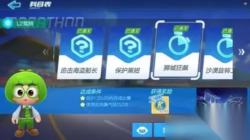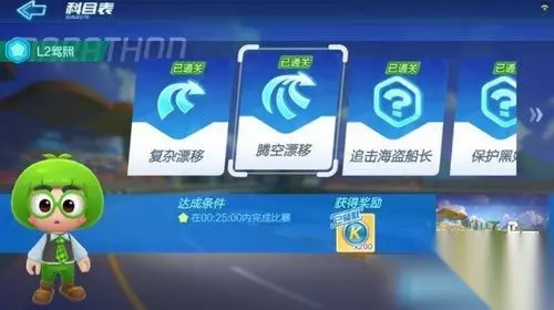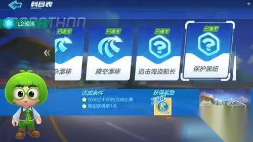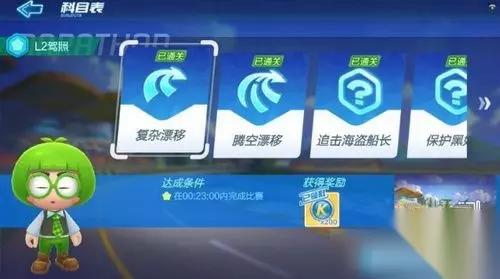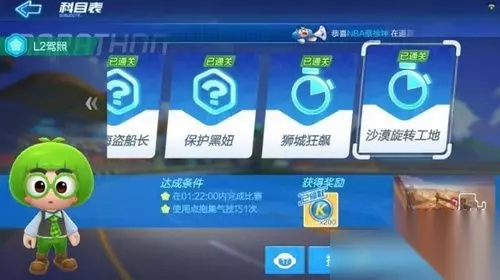 跑跑卡丁车手游L2驾照怎么考 考试一共有六场,分别是:复杂漂移,腾空漂移,追击海盗船长,保护黑妞,狮城狂飙,沙漠旋转工地 复杂漂移