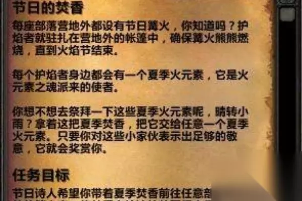 3、节日的焚香将节日诗人的夏季焚香带到任意阵营的篝火处,就能获得近战、远程或法术伤害的提升。