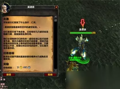 《魔兽世界》虚空龙声望任务完成方法介绍 1、先接取友善任务,在影月谷群星圣殿的灵翼平原找NPC莫德奈;