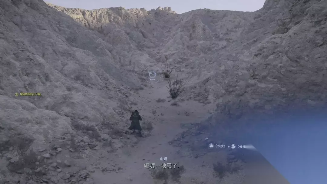 接下来跟着目标点走即可,走到一半会有“门震”(地震),我们可以长按L2和R2来保持平衡。