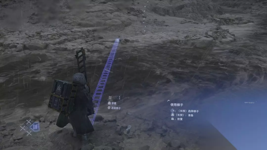 路上有不少的货物可以捡,比如工具梯子,我们可以长按十字键的右键选择梯子拿出来按L2键准备,选好位置后按R2放置。