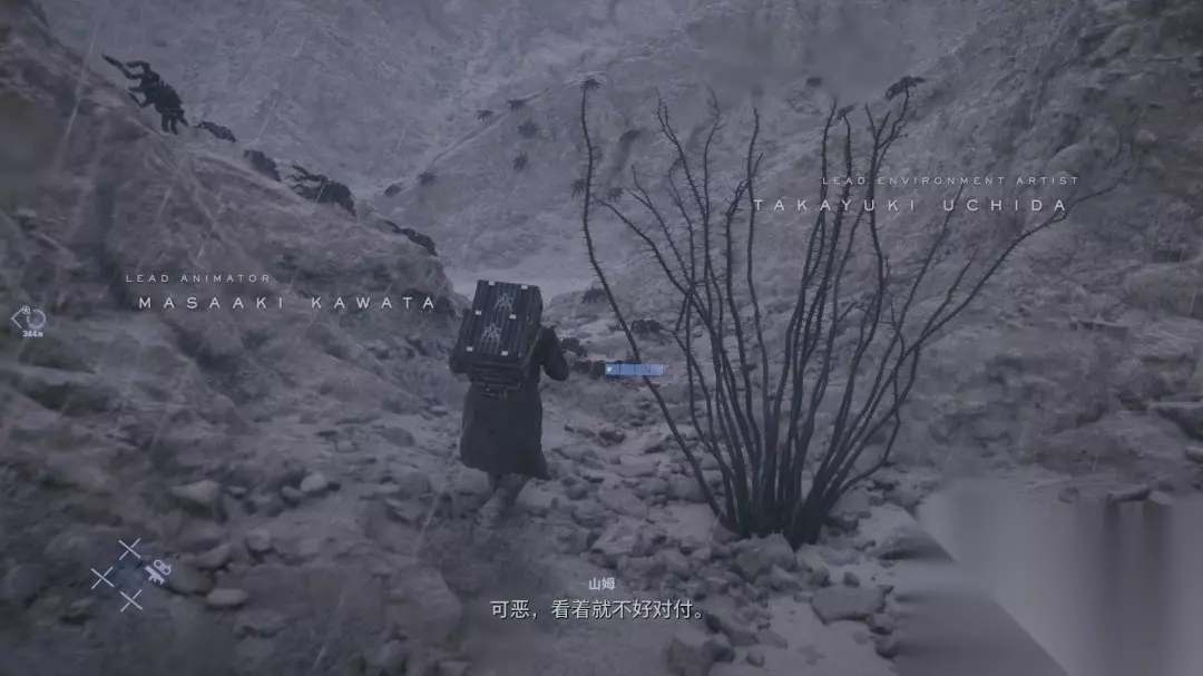点按一下L1键可以扫描附近的地形,如果有敌人也会被标记。 红色和黄色的图标表示容易滑到,具体标识可以看右下角。