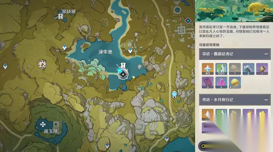 大地图上除了各种主线任务和支线任务以外,还有很多场景副本需要解密之后才能开启。其中华清归藏密室是在璃月地区渌华池池附近的一个未开放副本,玩家只有在解开入口之后才能进入到副本里面。