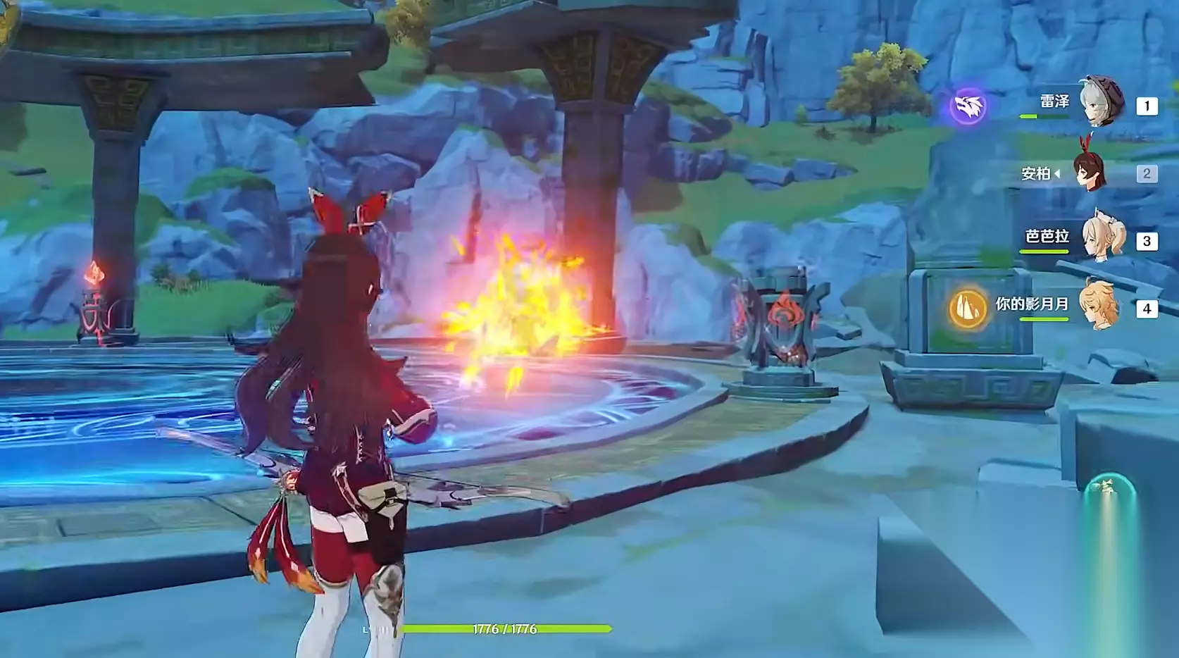 要开华清归藏密室这个副本,最好先来到璃月地区。打开地图从璃月港的上方找到渌华池区域,在渌华池右上方有一个传送点可以进行传送。过去之后朝西南方向一直滑翔,就能到达华清归藏密室的入口。密室的大门在蓝色的屏障底下,没有其他路线可以走,只能先破解门口的机关。观察四周的场景可以看到 ,环型的场景有5个火元素的方碑立在周围,烟绯的普攻或者班尼特的战技等就能点亮,不过前期的界面一般用免费角色安柏就够了,而且这里的方碑比较散,用蓄力重击攻击能攻击就能轻松射到各个方碑。