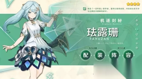 最近看珐露珊的角色演示是越看越上头,和她年龄不相符的带感音乐,还有她本身讨喜的声线、人设和外表;当然在角色演示前,得知她是能减风抗的四星风辅时就已经相当期待了。接下来给大家分享珐露珊的培养攻略。