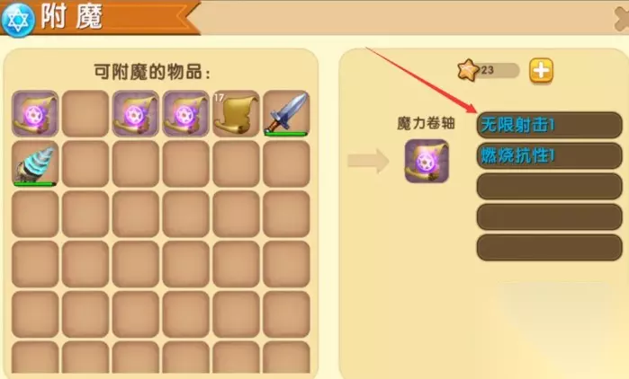 迷你世界装备附魔攻略 一、武器附魔选择 1、弓箭类武器推荐优先选择强力射击、无限射击和击退属性,这些都能显著提升远程输出能力。 2、近战武器如剑、矛等则更适合锋利和点燃属性,能直接提高基础伤害值。 3、需要注意的是击飞属性虽然看起来很酷炫,但实际会影响击杀效率,建议谨慎选择。