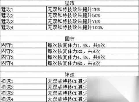 真三国无双爆发里面,连携系统可谓是关乎到我们角色在游戏之中整体战斗的一个核心问题,究竟连携系统是怎么发挥作用,连携系统本身有什么值得注意的地方呢?下面就让我们来看下真三国无双爆发连携系统攻略的内容吧。 真三国无双爆发连携系统攻略 在游戏之中连携系统分为3种形式,分别是固守,猛攻和神速三种。而游戏里面这三种连携会根据人数的不同产生不不同的效果。目前游戏中连携效果是如下表格所示:
