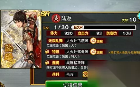 值得留意的一点,每个等级的连携技能是与军团相同国籍的人有关系,以陆逊为例: