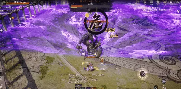 ● 第二段"危"+能量波: 冲锋后接"三连锤"!第一锤砸地,第二锤横扫,第三锤蓄力(头顶冒紫光)时释放大范围紫色能量波。技巧: 立即绕到BOSS背后,既躲波又卡输出位~触发QTE: 绕后攻击时,BOSS会触发QTE(屏幕边缘“闪避”提示)!立刻交闪避(0.5秒无敌),趁硬直期狂敲输出!这波能压到他半血以下~