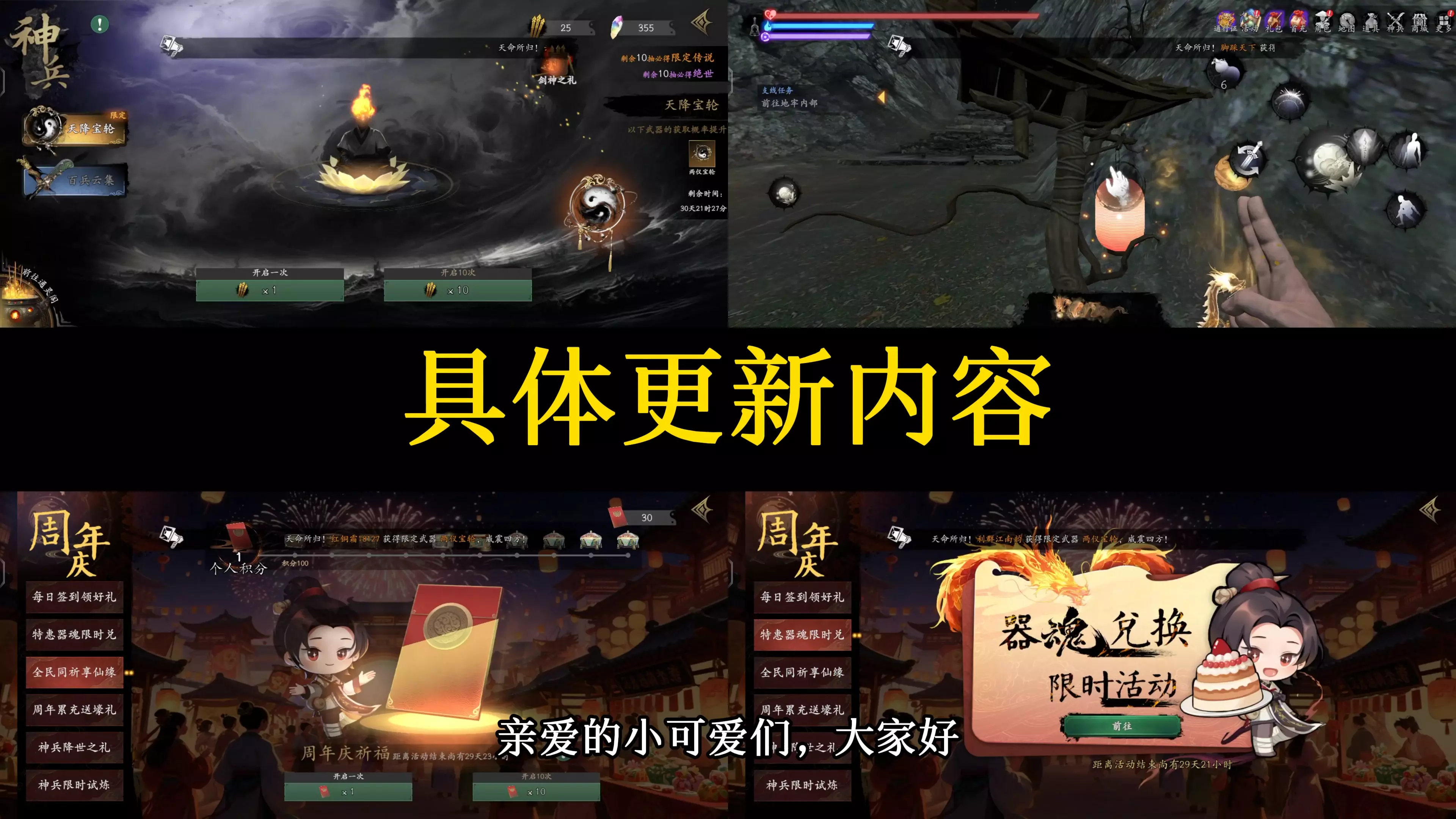 亲爱的小可爱们大家好呀!新一轮返场即将开始,为了让小伙伴们尽早获得想要的返场神兵,从本次返场开始,每期返场将同时上架两把神兵!