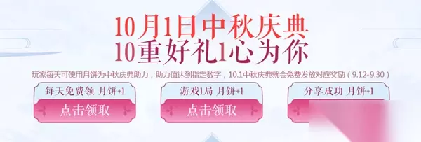 2020《CF》10.1中秋庆典助力活动 活动时间:2020.09.12-2020.09.30 1、玩家每天可领取月饼为中秋庆典助力