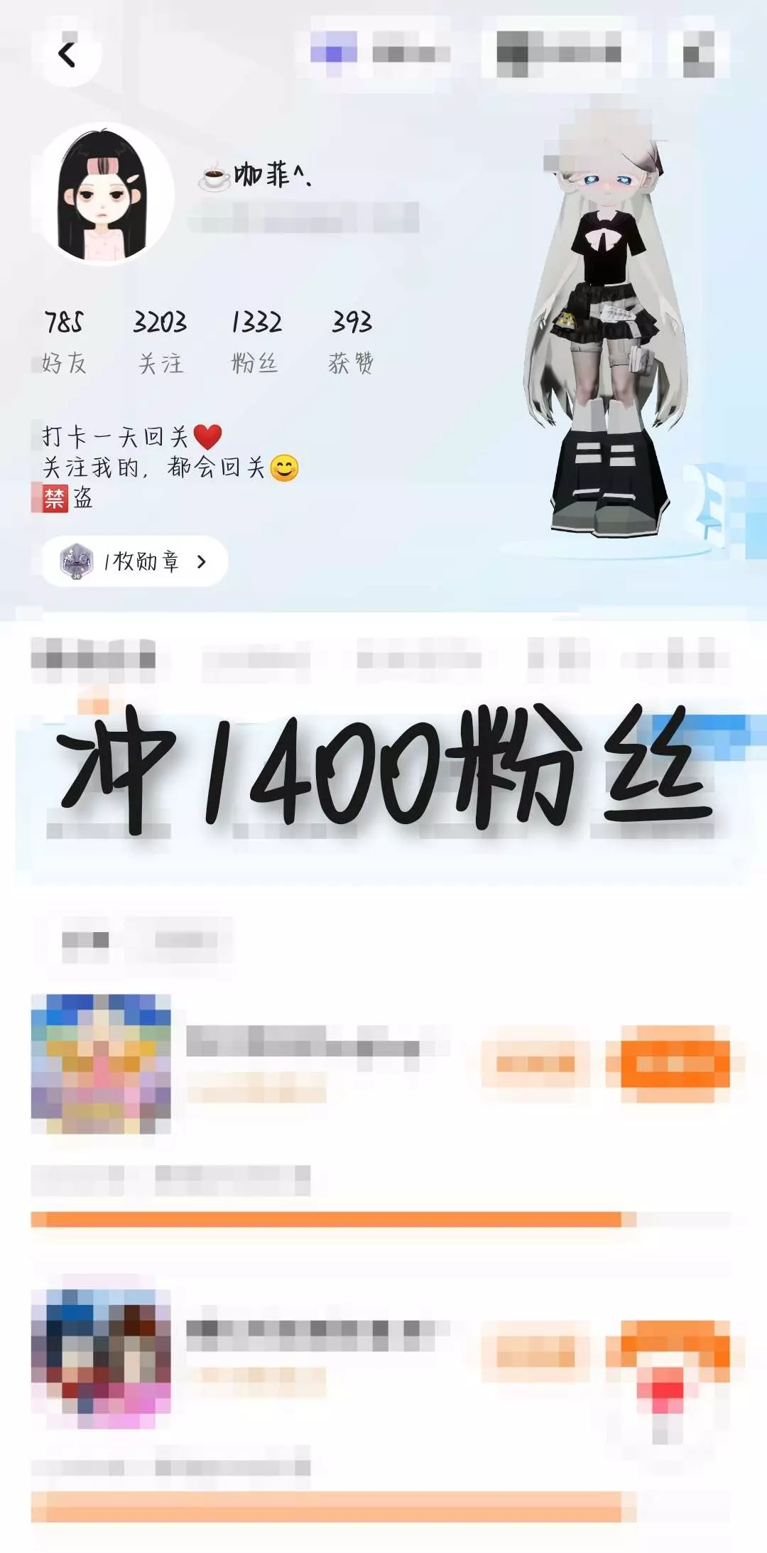 冲1400粉丝,只要是在我1400粉丝之前关注我的,我都会回关