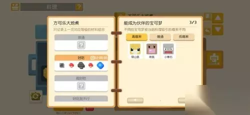 四、3大黄2大灰。可以出伊布、卡比兽、袋兽、大葱鸭等。 五、3大红1小黄1彩虹。可出妙蛙种子、蔓藤怪等。 以上就是目前的一些食谱搭配了,至于好不好用,你可以自己试试。