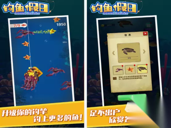 相对于模拟现实生活中抓鱼的,这款它是能看到很多鱼类,以经典的连连看玩法为主,既有可爱又清晰的画面以及超快的节奏。每个玩家,都能在这款游戏当中,自由的选择喜欢的模式,如果能在规定时间内,在每个关卡当中所出现的所有鱼儿消除的情况下,就能顺利过关,要在连接两个一样的时,掌握相应的规律。 高速下载 普通下载 优先233乐园APP下载 由于仅找到了上方两款可以抓鱼的,接下来介绍非常好玩的钓鱼游戏吧。 3、《钓鱼假日》