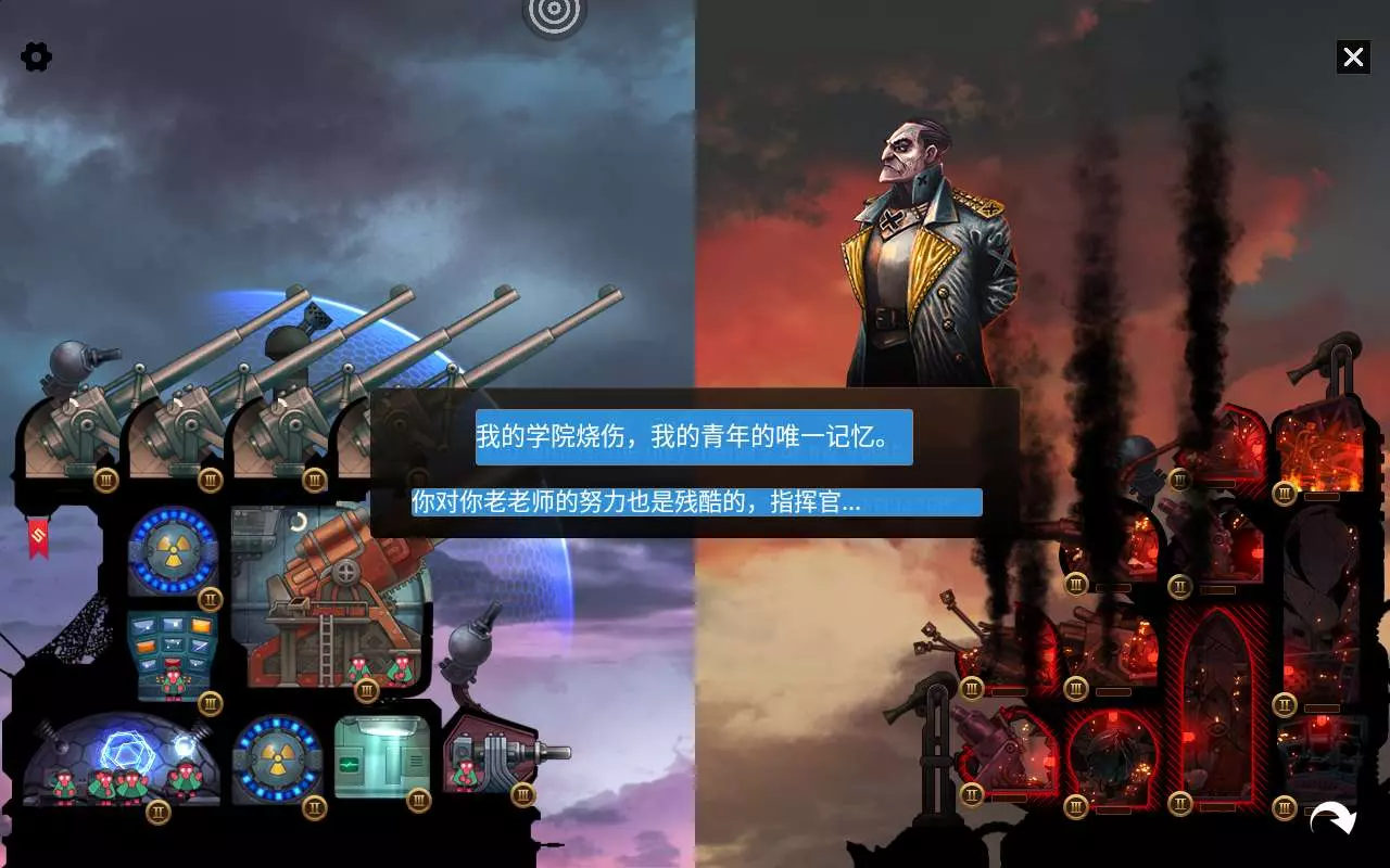 最重要的部分,一座又一座的敌方大部队被打击,逼近敌人首都,而且,我们得到了新要塞一一(叫什么来着)(第四张图),反正我对它的评价一一🤣👉💩但是,全游最牛 的火炮(1、2图的红色的大炮)一一欧米茄X火炮,满级240伤害,较高的命中率,十字范围伤+十字眩晕敌人(13号炮的实力),缺点是装填久,占四格(可以有非战斗格子)