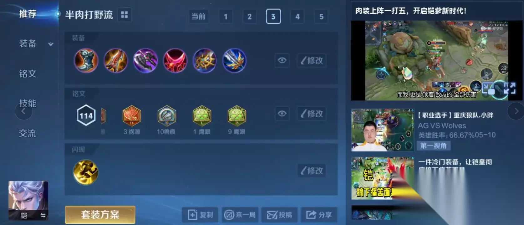 凯是一位兼具爆发与生存能力的战士英雄,想要发挥出他的最强实力需要根据战场情况灵活调整出装路线。追求极致爆发的输出流出装、兼顾生存与伤害的半肉出装以及适合打野位置的游走出装。纯输出流的凯追求的是极致的爆发伤害能够在瞬间秒杀敌方脆皮英雄。通常以抵抗之靴作为起始装备来减少被控制的时间,接着补上暗影战斧来增加攻击力血量和冷却缩减使得凯在前期就具备较强的作战能力。核心装备会选择宗师之力与无尽战刃的组合,宗师之力能够在释放技能后强化下一次普通攻击,而无尽战刃则大幅提升暴击率与暴击伤害,让凯的二技能接普攻连招拥有毁灭性的打击能力。最后可以补上破军来进一步提升对残血目标的收割能力,并搭配名刀司命或贤者的庇护来增加容错率。