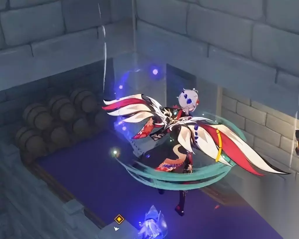 把最低的古堡模块,转至2个楼梯间隙中。