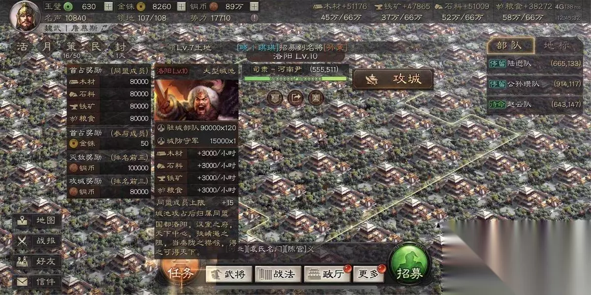 曾有粉丝给花席发了一张自己遇到BUG的图,因为某种未知因素,他看到所有土地都是10级,重启后就正常了。 多希望这是真的啊,一个画面有100个10级土地,花席怀疑洛阳全地图都没有这么多10级土地。 二:乐进是怎样变强的 士争先赴:乐进从二流变一流武将 非攻致胜:乐进从一流,变成顶流 曾经的乐进是二流武将,但是随着策划不断的增加新战法,他变成了一流武将,对平民玩家来说,他甚至可以当顶级武将玩。 平民玩家很少有满红司马懿、陆逊, 但是平民玩家有乐进,甚至有高红、满红乐进。