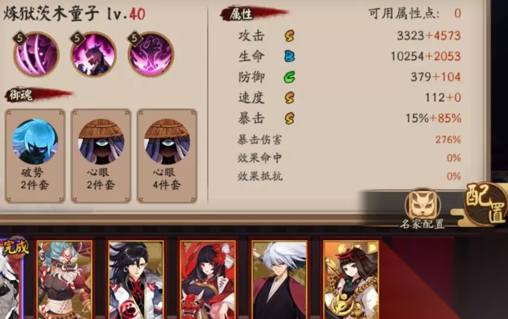 但是最高的上限增伤为百分之二十,所以不需要强行来堆叠加成。御魂比较推荐选择破势四件套加上荒骷髅两件套,词条选择攻击加成、暴击伤害等,可以让我方的输出变得更为爆炸。还可以将破势更换成心眼,会让茨木童子的续航能力稍微增加点,在面对敌方的高爆发式神时能多抗一两回合。