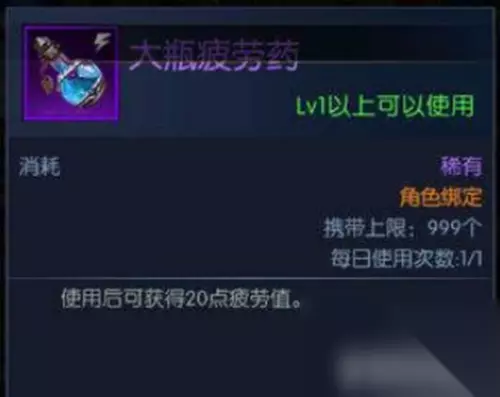 3,大瓶疲劳药:每日可使用1次,每次获得20点疲劳值。