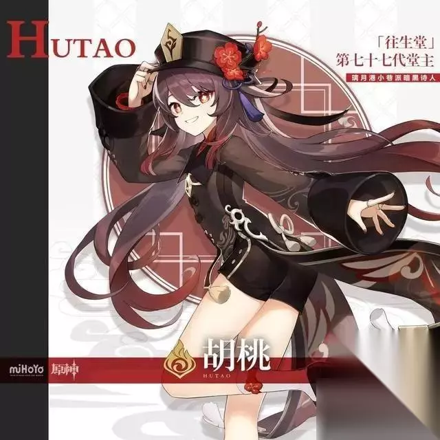 2、胡桃 往生堂堂主,给玩家古灵精怪的感觉。台词和配音也精妙绝伦,“丘丘谣”也是非常洗脑