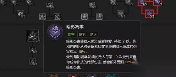 4、同时还有这个技能是可以让敌人感染暗影凋零,受到暗影凋客影响的敌人每第 10 次受到来自你或你仆从的暗影伤害还会额外受到伤害。