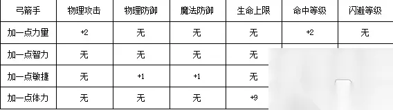 深度分析数据来看,力量、敏捷、体力是弓箭手的三大需要属性,加这三点对弓箭手的全面属性提升贡献最大!智力对弓箭手的属性影响小,选择放弃加智力!主抓力量、敏捷,侧重体力!