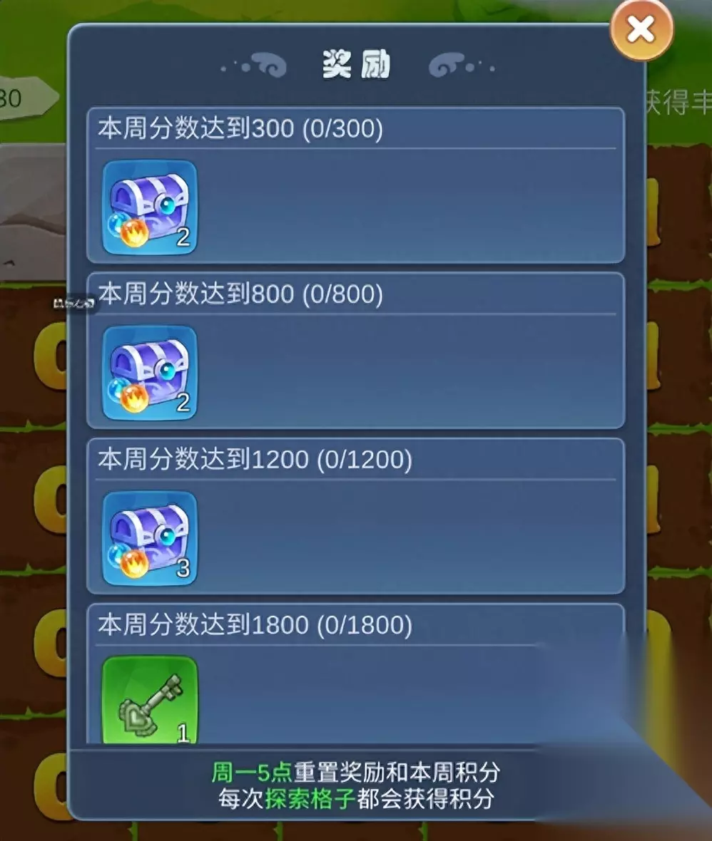 我们的探索次数可以通过完成日常任务来获得,从40活跃度开始,每获得20活跃度可以增加30步探索度,我们探索成功时可以增加善恶值,当我们善恶值大于地图上怪物时,我们就可以击败怪物,获得宝箱,开出奖励。但是要注意,当我们点到雷的时候就会爆炸,这时我们善恶值就会减少,这时如果我们估测一下如果无法全部完成时,我们可以选择跳关,来减少探索次数的使用。并且我们达到一定分数时也可以获得不同的奖励。