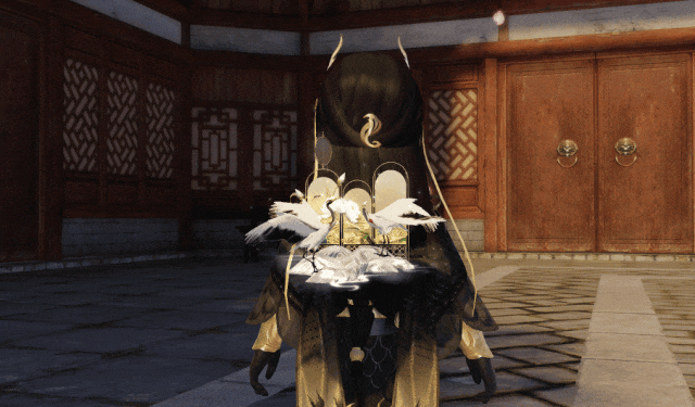 以月下白鹭逐浪为灵感,设计优雅。象征着自由与幸福的白鹭立于少侠身侧,姿态优雅迷人,身后是月光笼罩下略显缥缈的芦苇丛,星光与月色齐耀,绘制出月下白鹭逐浪的浪漫画面。