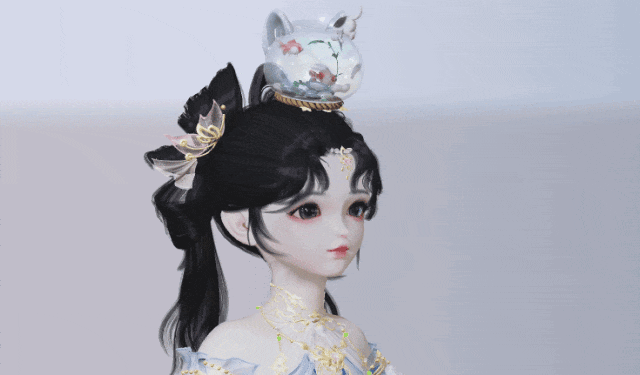 勤劳的喵喵重金打造了一个呆萌猫猫头形状的鱼缸,玲珑剔透的琉璃鱼缸中,水草摇曳,红白小金鱼自在畅游。