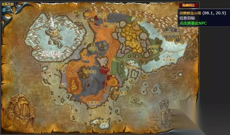 侦察鲜血尖塔位置图 坐标:(88.1,20.9)