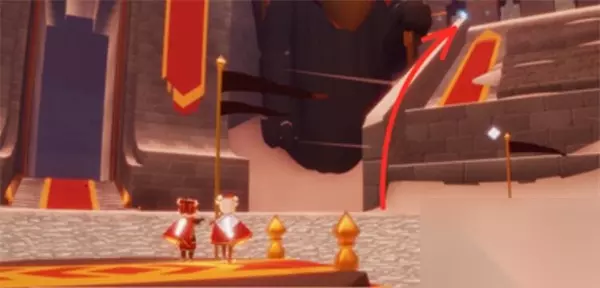 7、【鞠躬动作先祖】 在赛道终点沿着神庙大门右侧雕像的斜坡,前往最高平台即可看到先祖。