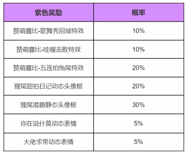 紫色徽章(出现概率5%)可能开出的奖励: