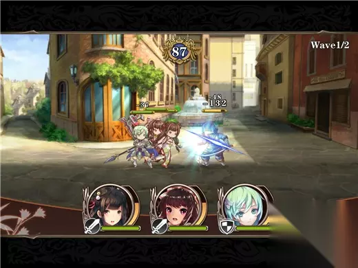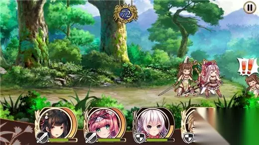 更重要的是它没有明晃晃的首充、VIP 这些大字充斥在主界面上(虽然在商城活动里面有一些类似的购买项目),除了抽卡之外也没有遍地都是的充消雷点,这点需要点个赞。 关于本作的各种 PVE、PVP 活动和卡牌养成等大家都已经熟悉的套路,这里就不多说了,毕竟是个日系游戏,参照以前玩过的日系手游的框架差不多就能理解。下面我们说说这个游戏的亮点。 游戏战斗乍看非常普通,就是最大 4 人小队自动进入战斗,玩家手动点击头像发动技能。但是位移机制 Ring Out 系统的存在,则比传统的前中后排卡牌游戏要有意思得多。Ring Out 系统在卡牌的属性上增加了“坚守”和“击退”两个属性,坚守则是守住阵线不被敌人打得节节败退,击退就是步步紧逼将敌人打退到画面的边缘,只要能形成优势击退,那么攻高血厚战力强的角色很可能因为坚守值不高而快速被击退到地图边缘,然后直接掉进黑洞退出战斗。