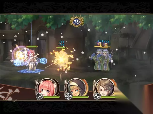 游戏卡牌设计的原创性和精美度很高,唯美但不庸俗,比某些恶意卖肉的二次元不知道高到哪去了。场景、UI、人设都是典型的日式中世纪风格,城堡骑士,剑与魔法的世界。游戏的主界面和战斗场景都是动态的,UI 设计美观,还有点击可晃动的欧式铭牌,都栩栩如生。音效方面,众多大牌声优(钉宫理惠、上阪瑾、户松遥、西田望见等等)的加盟,让游戏底气十足。其中的默认语音是日文的,不过也可以切换成中文,也许有不少国内玩家还是喜欢听中文配音的。
