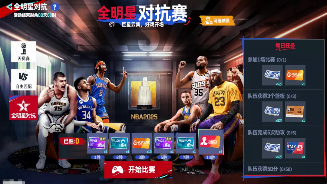 巨星云集,好戏开场!在巅峰对决,打出你的全明星风采!限时玩法【全明星对抗赛】活动继续!