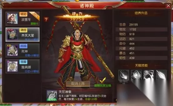 在诸神殿中每位神将都可以单独升级,从而提升侍将自身的攻击和血量等战斗属性,并且不同神将所需的升级材料各不相同,玩家在提升时不需要考虑分配资源的问题。