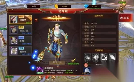 在诸神殿中每位神将都可以单独升级,从而提升侍将自身的攻击和血量等战斗属性,并且不同神将所需的升级材料各不相同,玩家在提升时不需要考虑分配资源的问题。其中系统自带的海神波塞冬只需要消耗银币即可提升等级,培养起来非常轻松! 神将提升达到一定等级要求后还会解锁其专属的战斗技能,战斗中将发挥出更强大的实力,玩家们快来解锁更多神将跟随自己战斗吧!