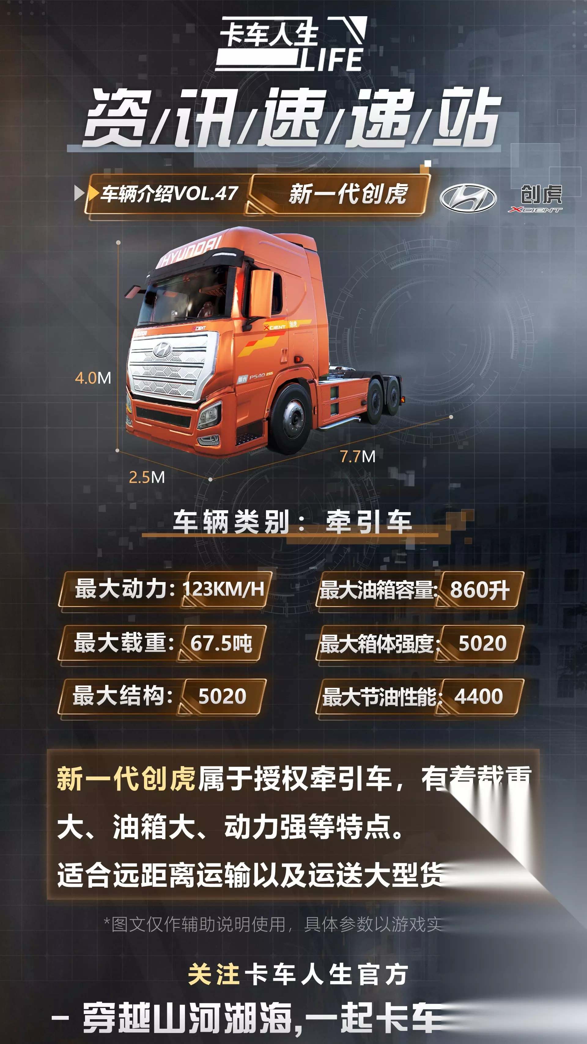 新一代创虎重卡在外观设计上进行了全面升级,镀铬中网向上延展,造型简洁且具有力量感。进气格栅采用菱形与梯形组合设计,纹理层次清晰,视觉效果规整。 两侧的新型分离式导风槽经过优化,不仅能有效降低风阻,其硬朗的线条还进一步提升了整车外观的沉稳质感。此外,全新创虎的核心优势之一在于其出色的载货能力,可更好满足实际货运需求。 专属运输效果:食品运费提升60%,加油费用降低50%