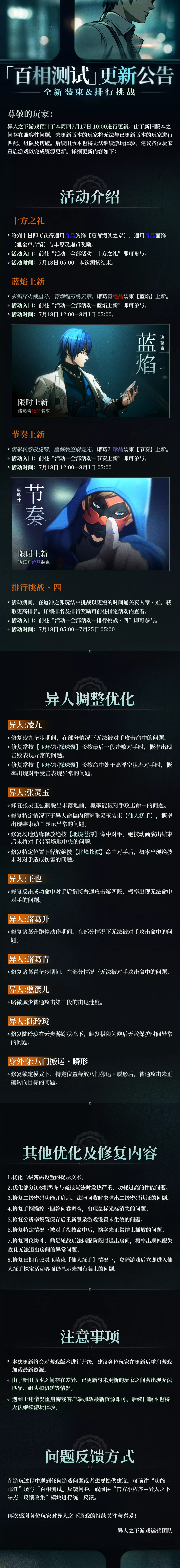 异人之下游戏|「百相测试」7月17日更新公告:全新装束&排行挑战