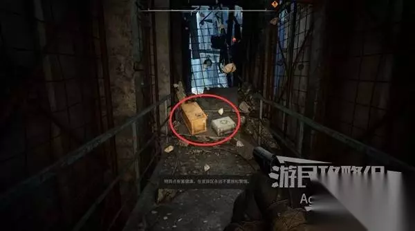 进入墙缝后,先右拐走到头,用小刀打碎盒子有补给可捡。然后回来走左边。