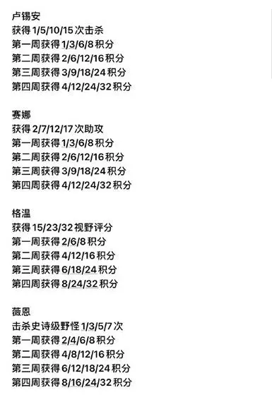 光明哨兵的兴起开放时间:2021年7月9日12:00起至8月11日6:59 目前大家需要吧德玛西亚的要求积分打完才可以解锁下一个地区 德玛西亚有7个阶级,总共需要210积分 目前页面上好像只有卢锡安和赛娜,大家按照图上的卢锡安和赛娜(并不是指一定要用这两个英雄)任务条件进行就行了(目前我们处于第一周,加积分也参考第一周的那一排)