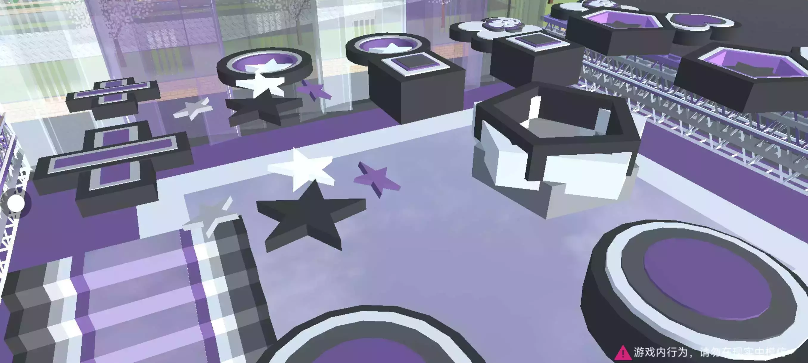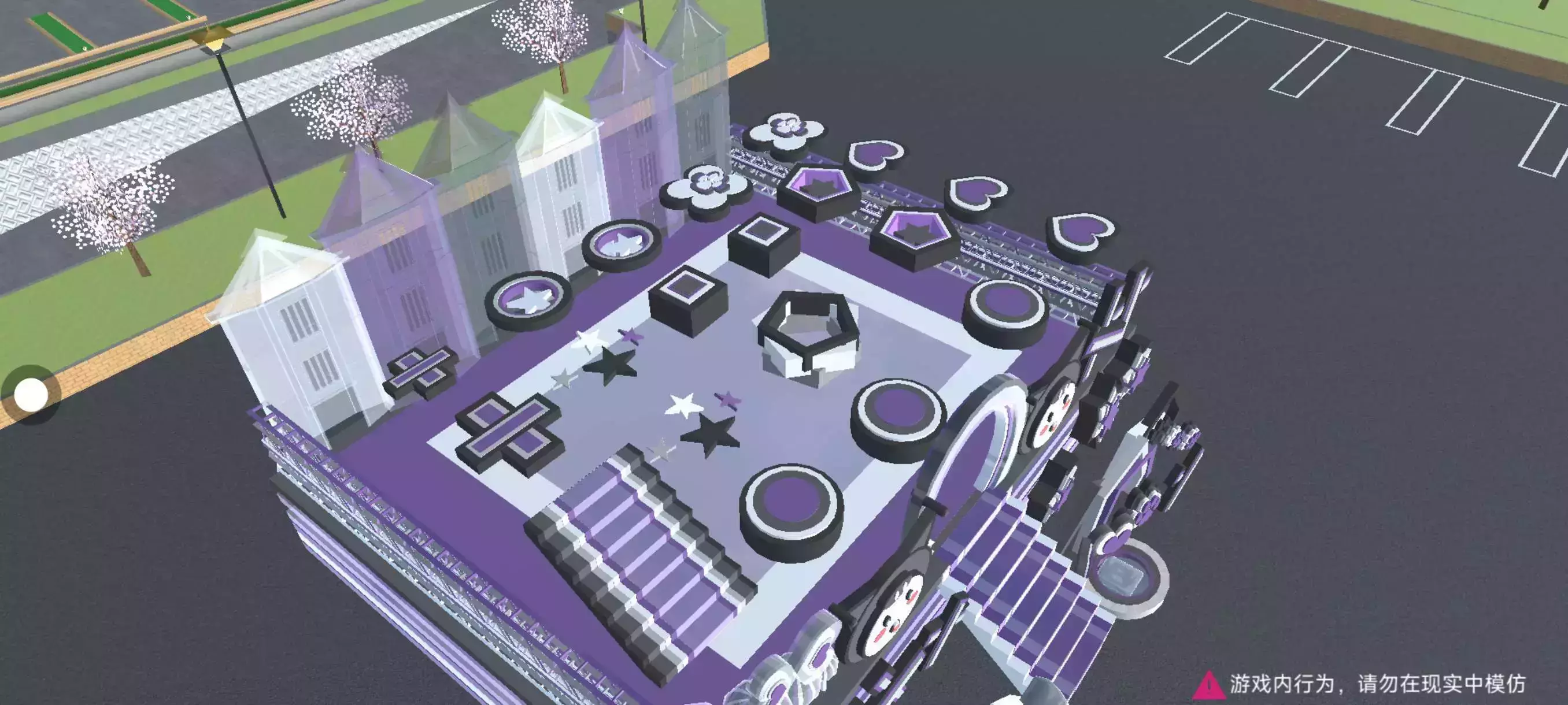 这个跑酷是以黑 白 紫 灰4种颜色组成的,一共采用了340个小道具,但是整体上不是那么美观(υ . . υ) 有点丑丑的,但是已经尽力了இωஇ 不过个人感觉外部还是很好看的,毕竟外部用了243个小道具,如果要让内部好看的话需要2个id,但是时间有限所以没有拿2个id了°¯᷄◠¯᷅°