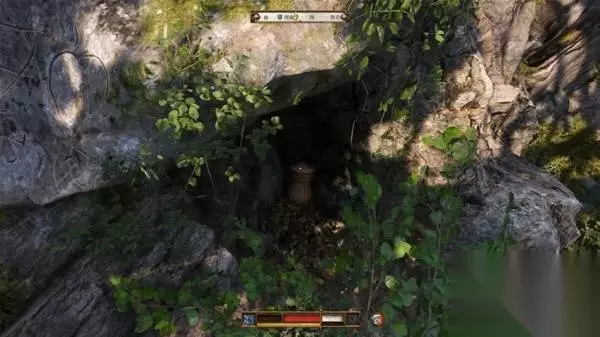 这里,上面这个Y路口,点是大石头底下但是其实Y的两边都有点东西都可以搜搜。 本来我是没注意左边洞里墙上还有个图,有老哥问了我就顺便找找了
