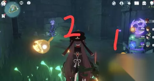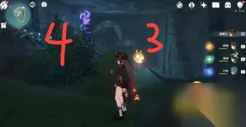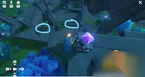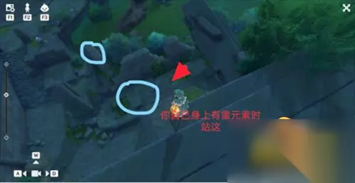 13、第二幅图继电石要放在倒塌的石板上,然后你自己站在我标的点上,需要沾染雷元素或者去第一幅图左下角的雷樱树拿雷种子。