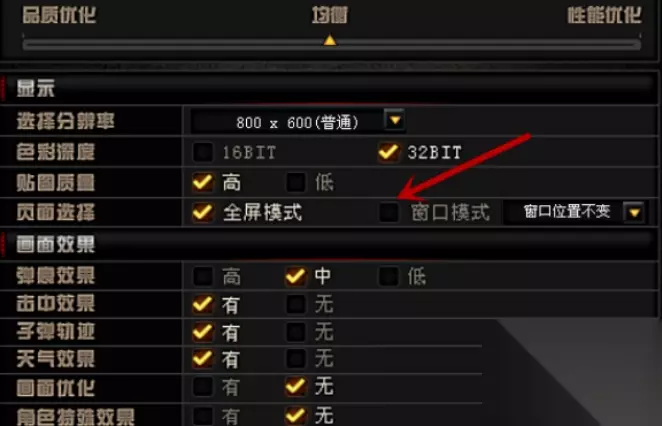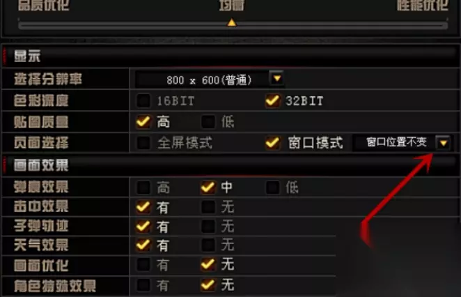 3、之后在里面页面选择主选项后面,勾选”窗口模式“后面的框框,就可以将游戏界面设置成窗口模式,如图所示。