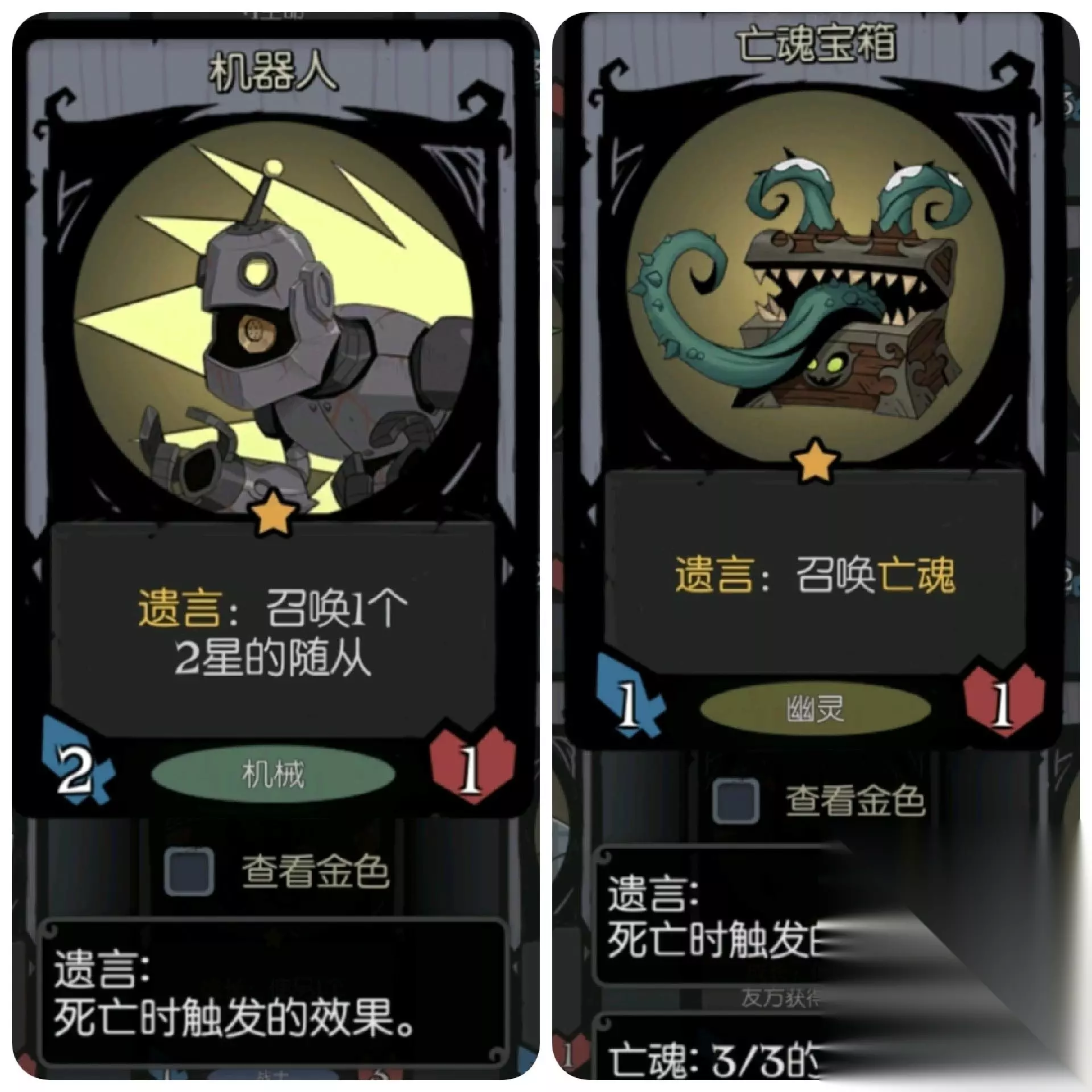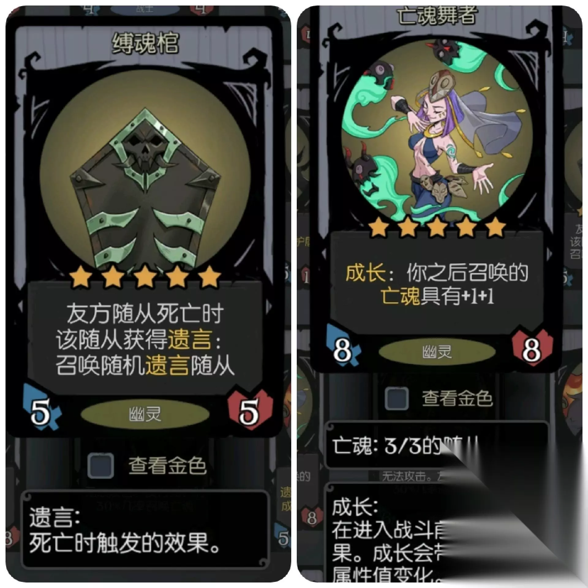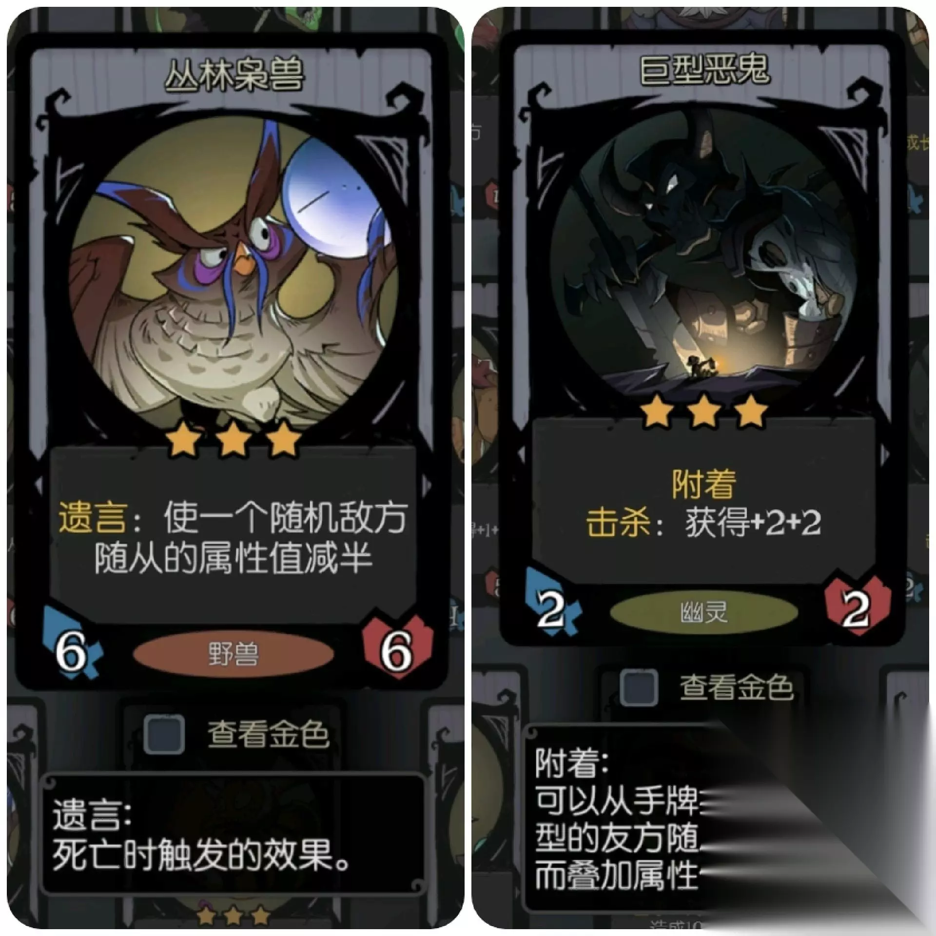 为什么要这么多的遗言随从呢?不仅是因为遗言随从的功能性很强,而且他死了之后腾出空位可以给我们召唤很多小幽灵养船长。 比如这个丛林枭兽,要是有一个金色的,可以很好的克制许多数值怪。