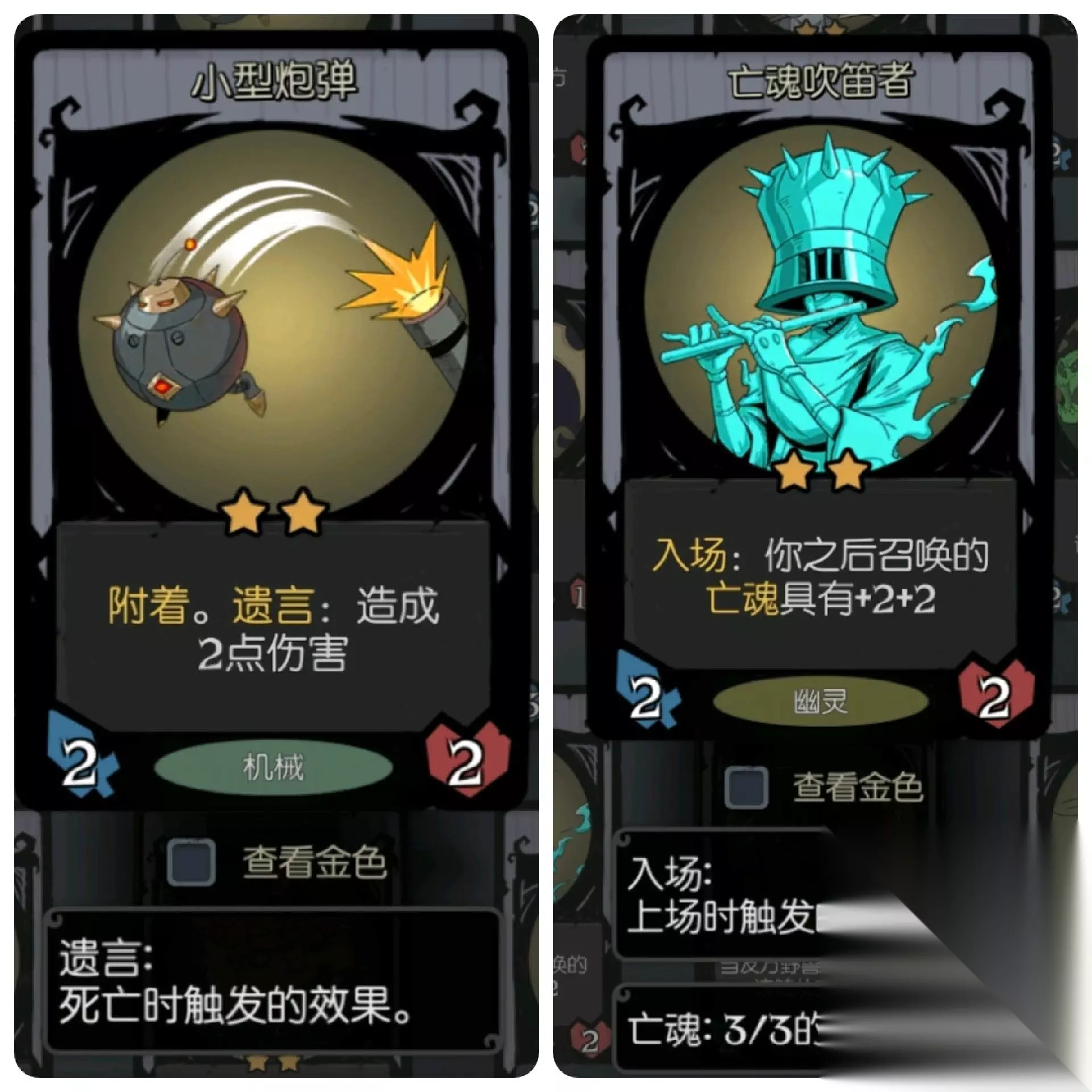二星过渡,增值弹附给机器人,亡魂吹笛者见到就拿。这个时候的遗言随从,可以多拿一些遗言随从,然后用魔药工坊的加一加一,让整个卡组的实力提升。 简而言之,在没拿到幽灵船长之前,不要觉得自己是一个亡魂流,要拿自己当遗言流养。