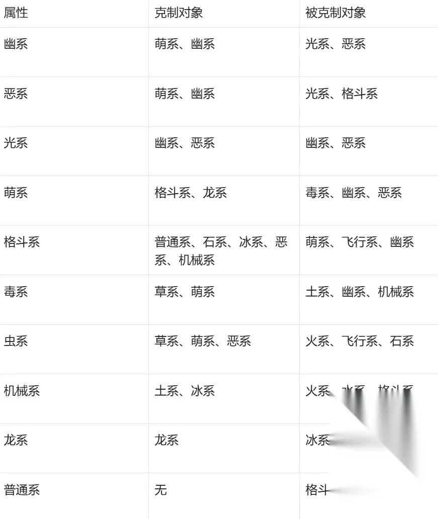 火、水、草三系是游戏最基础的属性,能形成完美克制闭环。其中火系:克制草系、机械系、虫系;被水系、土系、石系克制。水系:克制火系、土系、石系;被草系、电系克制。草系:克制水系、土系、石系;被火系、飞行系克制。电系:克制水系、飞行系;被土系、龙系克制。冰系:克制草系、土系、龙系、飞行系;被火系、石系、机械系克制。石系:克制飞行系、火系、冰系、虫系;被草系、水系、格斗系克制。土系:克制火系、石系、毒系、机械系、电系;被水系、草系克制。飞行系:克制草系、虫系;被电系、冰系、石系克制。当然,游戏中还有很多其他的属性,这里就不一一列举了,大家可以观看一下的图示来掌握。