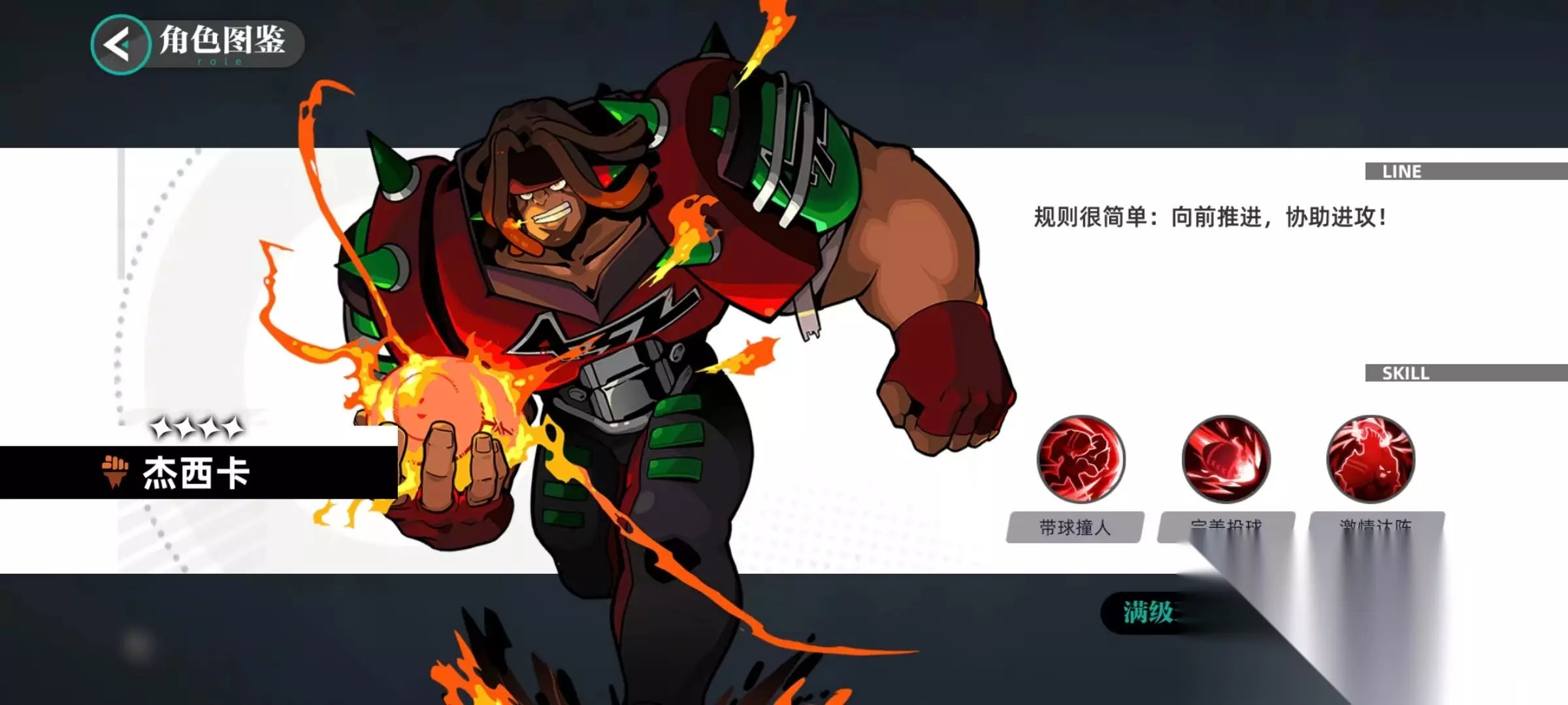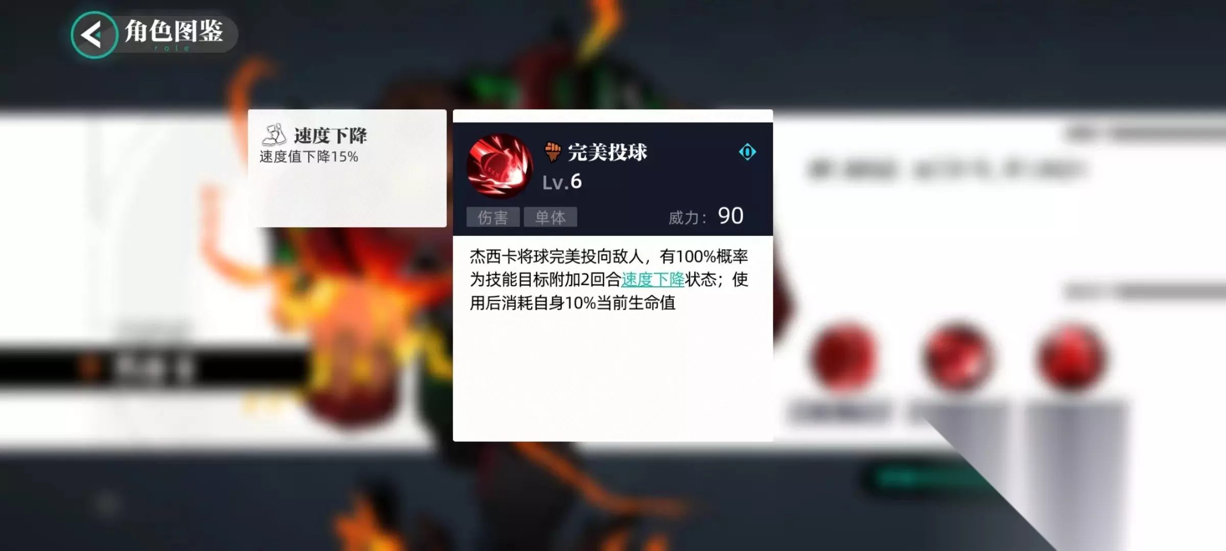 第1个技能带球撞人,向选中敌方目标发起猛烈冲击,在冲撞之后有几率为目标附加嘲讽状态。被嘲讽后敌方会强制攻击施法来源,这样就起到了保护其他队友的作用。通过提升技能等级,后续概率还会进一步提高,最多能达到70%。第2个技能同样是单体伤害类型,杰西卡将手中球投向敌人,造成伤害后以损失自身生命值为代价,为敌方附加速度下降状态。本身血量比较高,所以损失一些也不影响生存,但是对方速度下降后就失去了率先出手机会,对战局影响比较大。